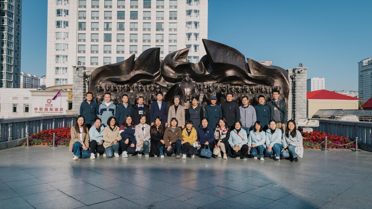 在国家级爱国主义教育基地鸭绿江断桥,教师党员们走在大桥上,近距离观看桥体钢梁上清晰可见的弹痕,凭吊和铭记中国人民志愿军的英雄事迹。桥头的群体雕塑真切还原了70多年前人民志愿军在司令员彭德怀的带领下,雄赳赳、气昂昂跨过鸭绿江的英雄壮举,时刻提醒着我们历史不容忘记。