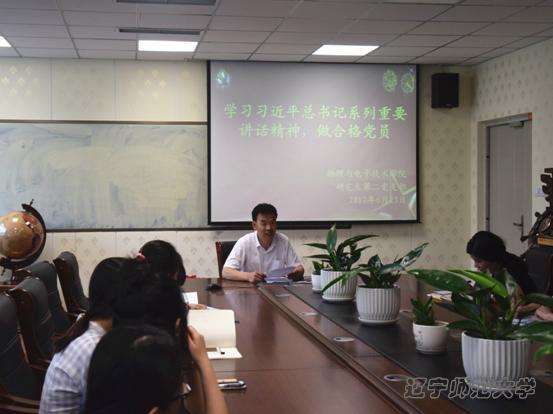 2017年6月23日上午,我校工会主席杨俊福老师围绕《学习习近平总书记系列重要讲话精神,做合格党员》这一主题,深入解答了青年学生党员在树立理想信念、学习理论知识、处理人际关系三个方面的问题。要求青年学生党员要坚定理想信念,结合自身实际实事求是,树立远大理想。