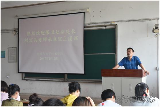 2017年6月30日上午,我校保卫处副处长刘宏兵老师围绕《学做结合,助推安全教育》这一主题,为同学们讲解了安全知识常识,并强调当代大学生在学习实践中要努力将外力约束化为主观能动,在潜移默化中积累成正能量,学做结合,实现自己的社会价值。