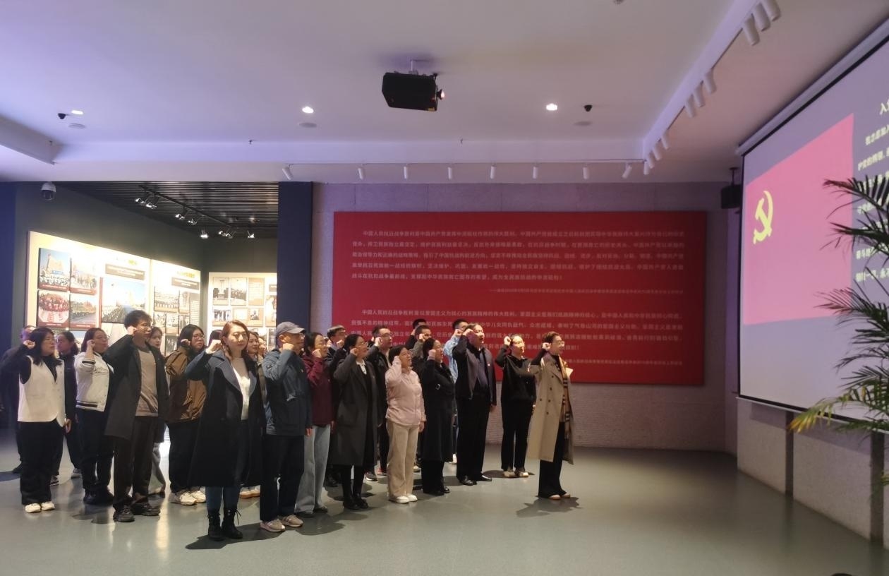 在庄严肃穆的“九一八”历史博物馆,伴随着讲解员的讲述,师生们神情凝重,缓步于记录民族伤痛的历史长廊。大量珍贵文物、历史照片和复原场景,真实再现了日本帝国主义策划发动“九一八”事变、侵占我国东北的屈辱历史。那段山河破碎的悲怆岁月,那些前仆后继的英烈壮举,深深震撼着每一位在场师生的心灵。参观结束后,澳博 党委书记李凝带领全体师生党员,面向鲜红的党旗,紧握右拳,庄严重温入党誓词,用铿锵有力的声音再次许下对党的忠诚誓言。