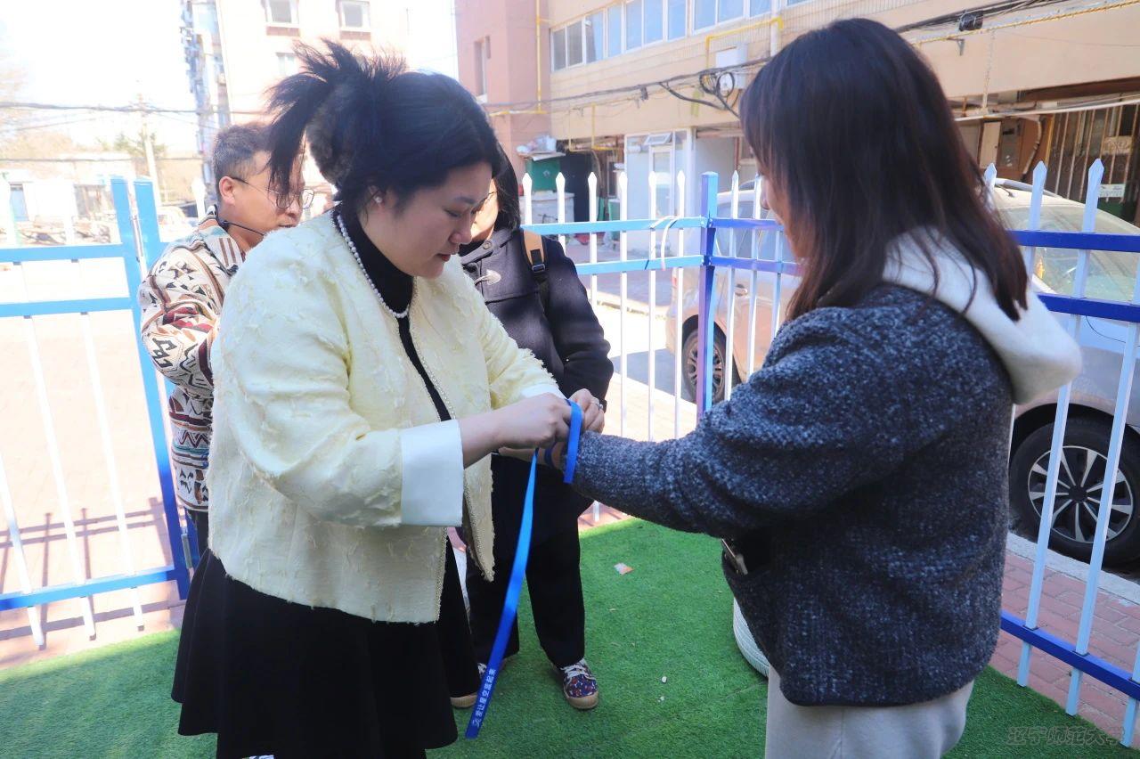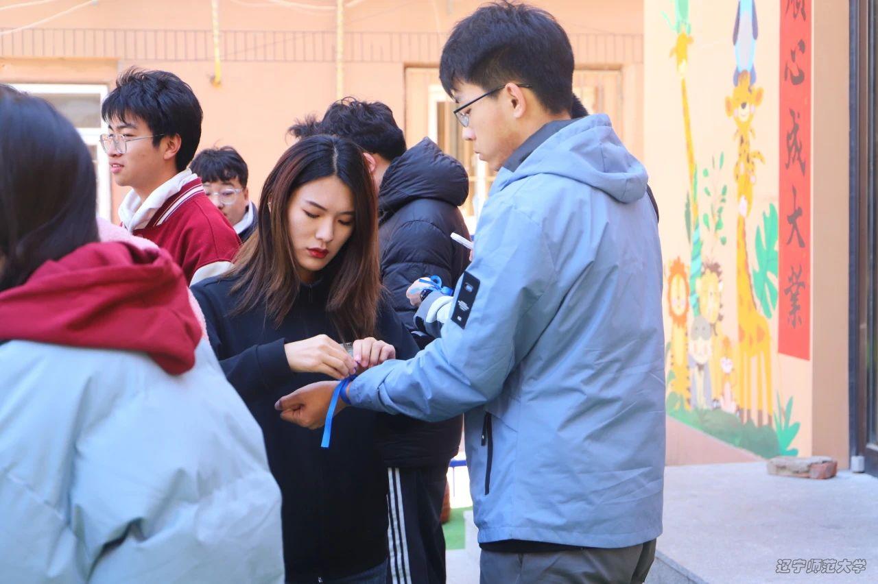 接着,学校的老师们手拿着象征着关爱与希望的蓝丝带,为志愿者们一一系上。大家根据分组安排有序组队,每一位志愿者都满怀期待,开启这场充满爱与温暖的陪伴之旅。