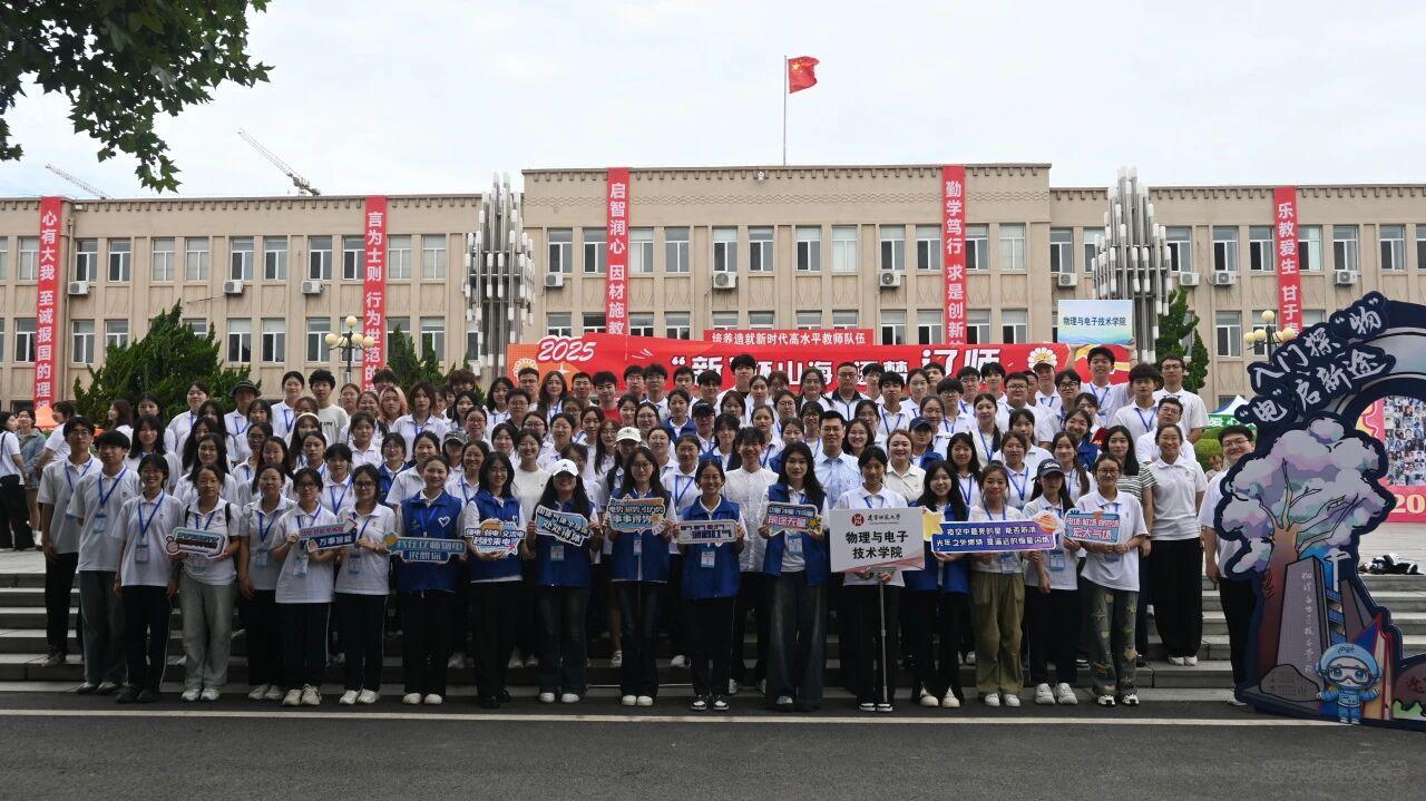 清晨六点,辽师物电迎新场:人齐、物齐,心意满。晨雾还裹着校园,物电迎新点已“醒”得彻底—–志愿者们穿梭其间,有的踮脚把“物电欢迎你”的横幅拉得更展,有人对着指引牌确认路线,“欢迎新同学”的牌子摆得端端正正,就等新同学来,把满场的暖递到他们手里。