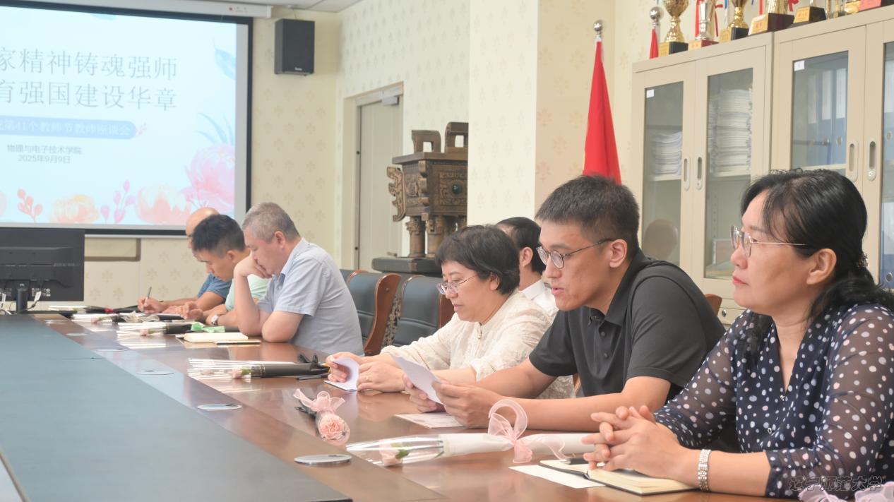 座谈会伊始,本科生、研究生学生代表们分别以饱含深情的诗歌朗诵拉开序幕。“三尺讲台存日月,一支粉笔写春秋”,同学们用真挚的语言、饱满的情感,倾诉了对教师辛勤付出的感恩与敬意。